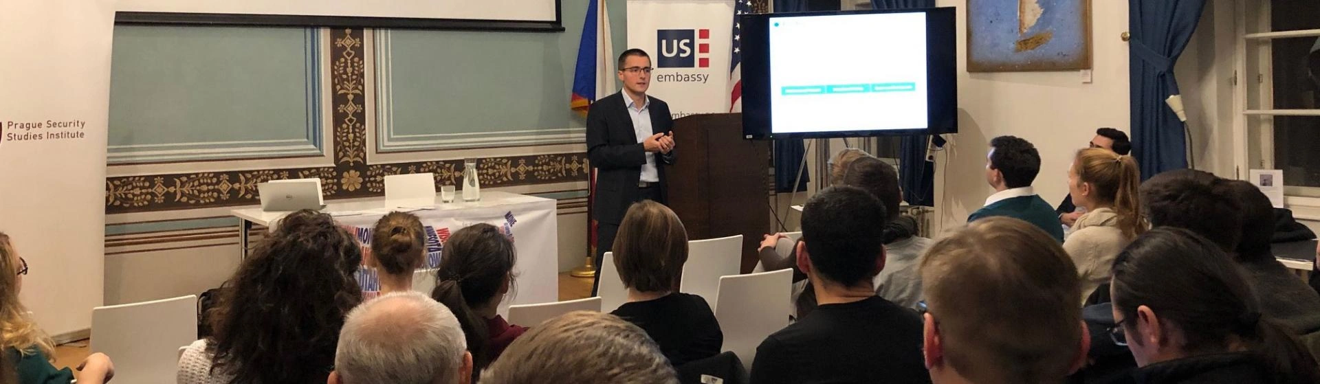 The lecture entitled „Security in Outer Space – Stakes for Europe“ was hosted by the American Center in Prague.